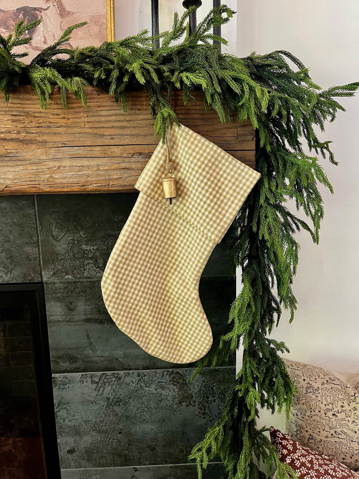 Christmas Stocking "Fold Over" Camel Plaid
