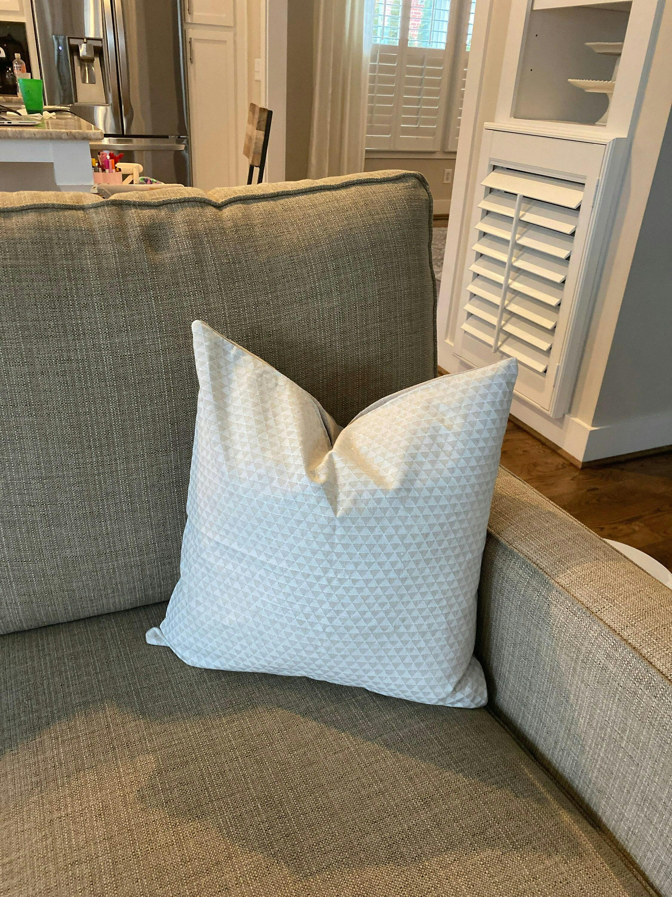Our pillow covers are all professionally sewn in the USA with over-locked finished edges to prevent fraying and and feature an invisible zipper